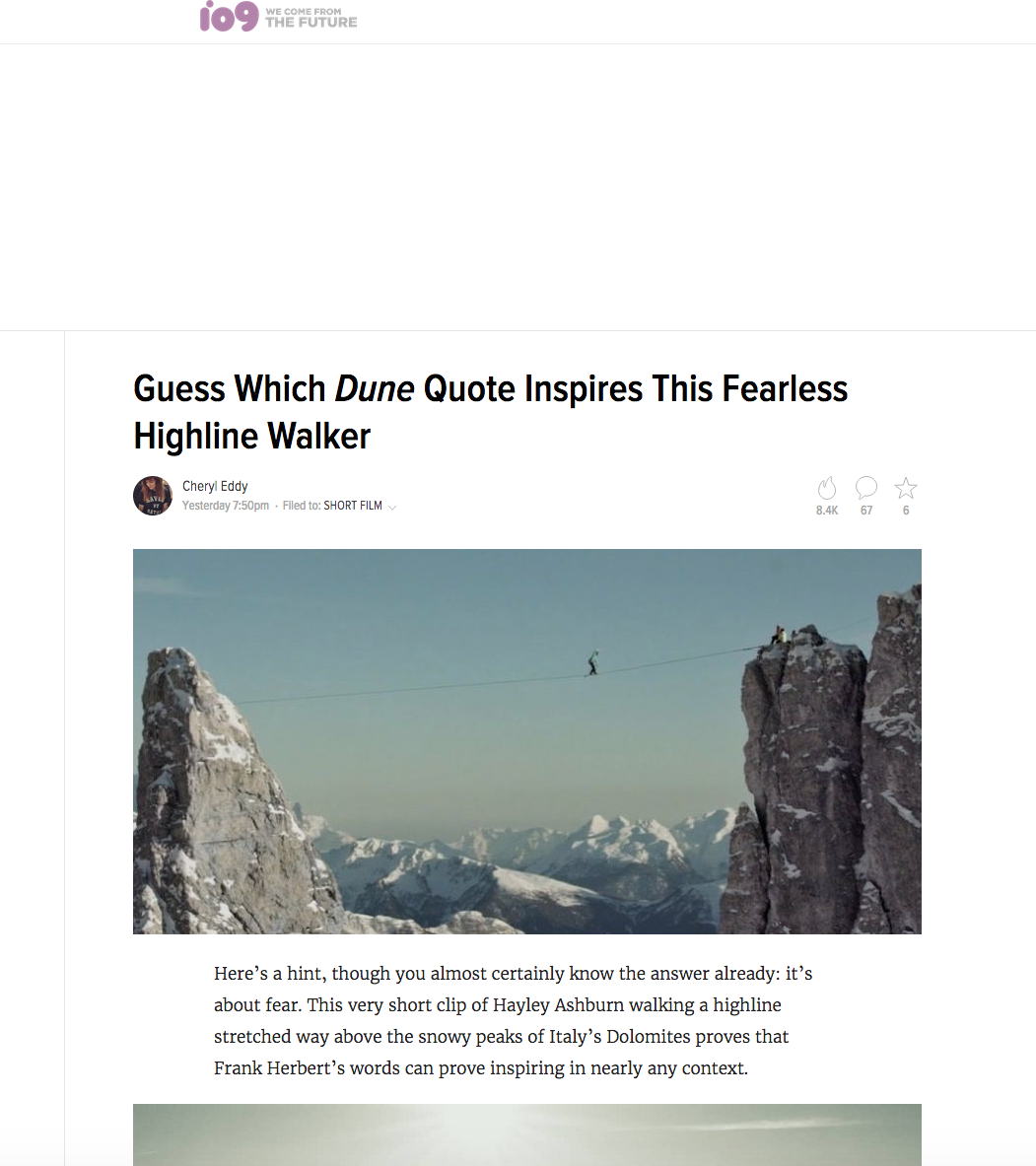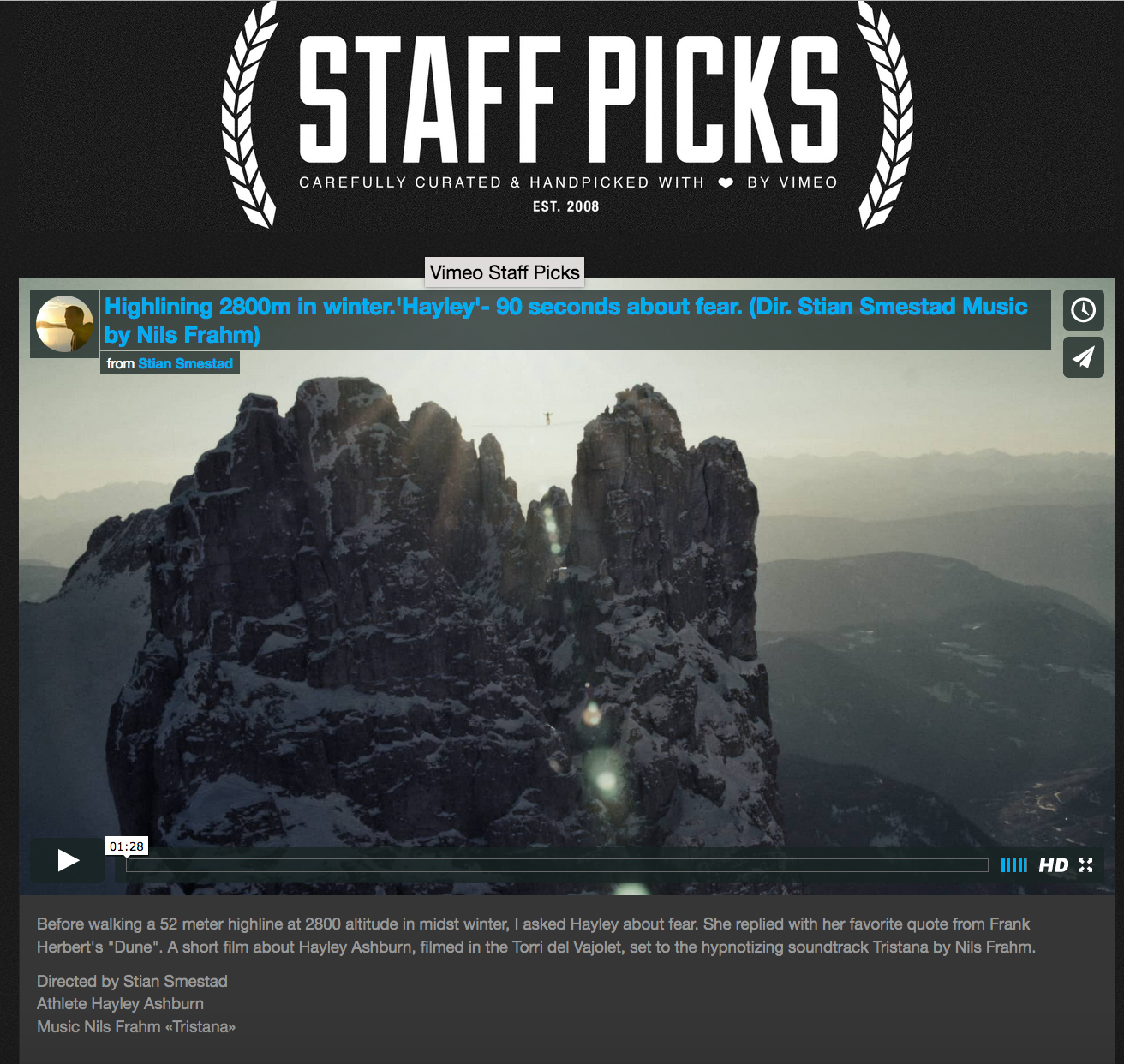 Before walking a 52 meter highline at 2800 altitude in midst winter, I asked Hayley about fear. She replied with her favorite quote.